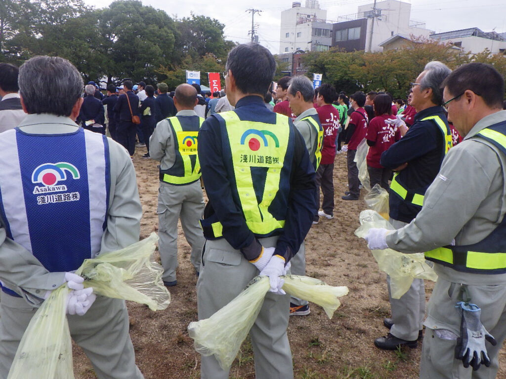 当日は、和歌山市建設業協会に加盟する企業をはじめ、多くの企業や地域住民の皆さまが大新公園に集まり、和歌山の玄関口であるけやき大通りやJR和歌山駅周辺の清掃活動を行いました。