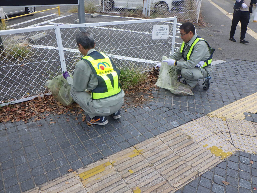 私たちも地域の一員として、美しいまちづくりに貢献することを目的に参加し、来訪者の皆さまに気持ちよく訪れていただける「美しいまち 和歌山市」の実現の一助となるよう、ごみ拾いや除草などの清掃活動に取り組みました。