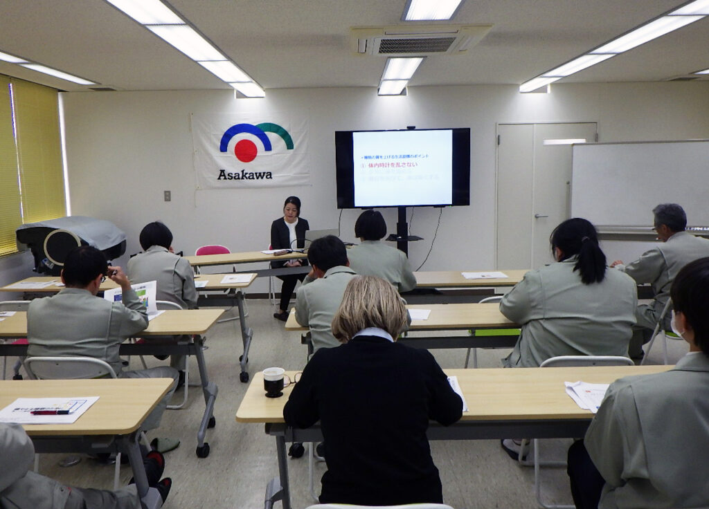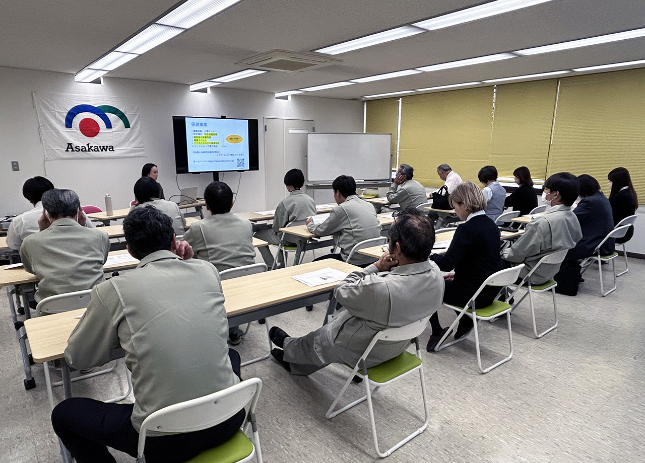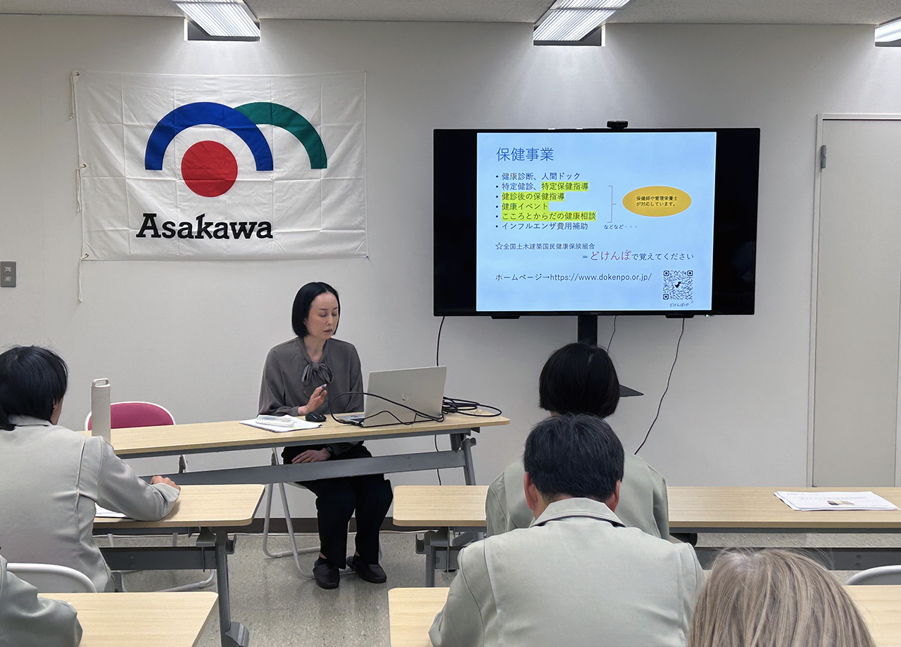 新入社員健康セミナーを実施しました。 2026年4月9日2026年4月10日 4月9日、新入社員健康セミナーを実施しました。全国土木建築国民健康保険組合 大阪健康支援室より講師をお招きし、「ストレスと上手に付き合うために」、「健やかな睡眠のために」をテーマにご講話いただきました。参加者は、質問に答えながら自分の考え方チャートを作成し、席の隣や周囲の人と比較したり、平日と休日の睡眠の差を体内時計チェックシートに記入したりしながら、心と体の健康について学ぶ貴重な機会となりました。
